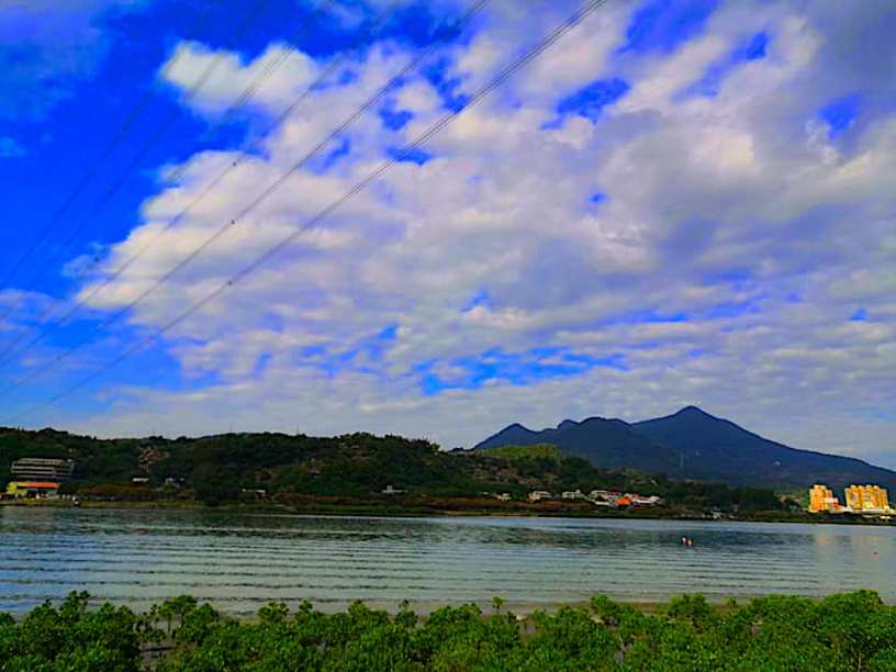 我們先坐著看河,再轉過身子,看山,從下往上,看著山壁上「關渡宮」三個大紅字,廟宇屋頂的雕刻總幾乎和大自然的一樣精細,這些都是幾個工匠一輩子的付出,用生命完成,空氣也夠清新讓我們看個清清楚楚,不熱,坐在那邊發呆,以為是下午茶,忘記等一下是要去打卡上班的。你說,走一走吧,於是趁上班前,再走了一小段木棧道,就這樣巧遇了這幾隻駝著背的夜鷺,正在揀食木板上的什麼。你直接叫出了「夜鷺」的名字,果然是盯了關渡平原好幾年的粉絲,估計昨晚大概也是一對人類情侶,提著鹽酥雞走在這條木棧道,掉了幾塊,變成今早夜鷺的早餐,牠銜了一口,跳落到旁邊的水筆仔,再降落進去綠叢裡面的沙地,牠們專門吃大餐的安全庇護所,這時候我才注意到這河流一點也不平靜,它正發出巨響!你默默手機查了一下,再過三天是月圓,然後你宣佈,這就是漲潮的潮水聲,然而這段河道並不開闊,漲潮聲音反而特別巨大,河流表面已順流被切成一條又一條的水紋,讓漲潮的水流,一層又一層地往岸邊方向疊上來、疊上來,很著急的。