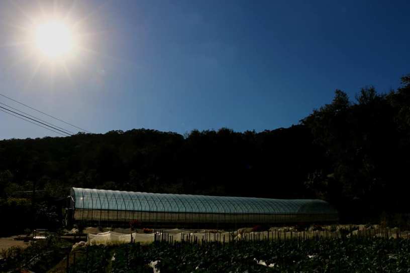 這是我參訪的第一座有機農場,我也突然覺得,有機,其實是一種聚集同好的做法,最後得利的或許從來都不是身體,而是心靈。說實話,當一顆蘋果不是有機的,我會削皮再給孩子吃,而當一顆蘋果是有機的,我則連著皮給孩子吃,洗也亂洗一通,但,真能保證當我吃了一萬顆不削皮的有機蘋果,會比吃了一萬顆削皮的農藥蘋果,致癌率還要低嗎?就像眼睛雷射手術,眼科醫生自己不敢為自己眼睛做,因為他們不確定三十年後會有什麼副作用,那,目前的有機認證標準,所謂農藥把關值,或是否仍有未知之有害物,真能確定三十年後沒有副作用嗎?只是因為今天的科學研究尚未發現,無法保證它已經是安全──此時我看著眼前的菜園,再望向菜園後方的木造長亭,再接著望往長亭後面的、遠方的綠山,再一直往上,看到山頂的輪廓,還有後面的藍天,我想,這就是身為人,一生的「必然」──必然無法理性去看待、處理、控制自己的人生,必然無法保證任何。有機的概念就像許多人間之事,是建立在「信任」之上,而信任這種事,常常也是人類一廂情願,但真正real的,是當下、今天、TODAY,因為這件事而我們聚在一起所引發的同夥友誼,這點,還真的已被科學確認,是能讓人長壽一點點的。