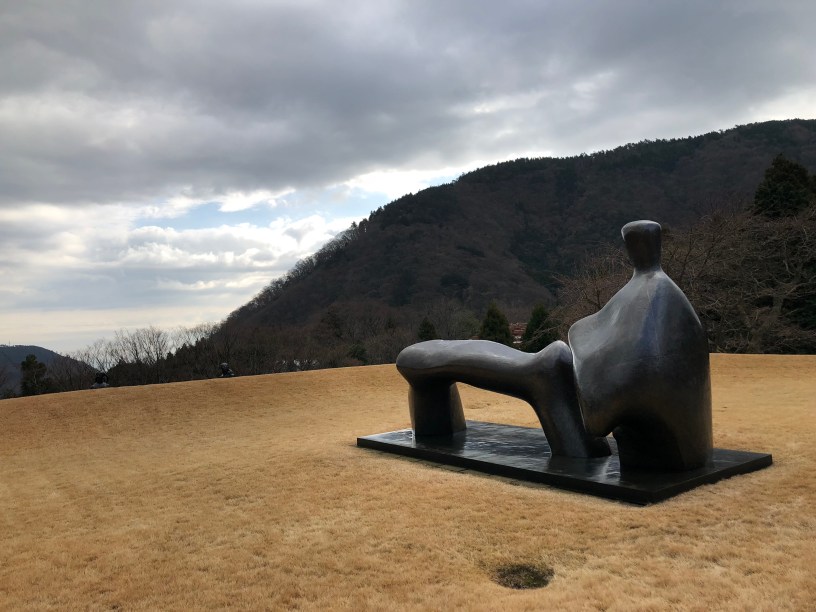 最後一天我在你支持下決定包車,包車司機也是你幫我找到的,你也在微信群組裡收到我們的對話。這趟車錢不斐,但到最後一日顯然這還真的是唯一的方法,今早完全無法想像在3度低溫中如何有動力提著五箱行李與一台娃娃車玩這個山中的箱根的幾個景點?就算搭得上巴士,也帶不上行李。看到包車我們心就安定了,司機幫我們把五箱行李和一台娃娃車都放妥在後座,今天一天我們就輕鬆了;他同時也幫我們排好行程,為了趕飛機,我們只能玩三處──先到雕刻之森美術館,這選擇顯然正確,我家兩個孩子都愛藝術,哥哥對著每一個大型雕刻細細的拍照,原本整片綠茵現在枯成整片的金黃,雖是枯,卻顏色實在鮮豔得好像活得更亮麗的,畢卡索博物館藏著向他女兒買來的三百件美術作品,然後,原本想趕搭海盜船直接在這山中大湖蘆之湖上看個過癮,我喜歡後來的決定──捨棄凍冷湖面,改搭有暖氣的大涌谷纜車,一覽那平靜如鏡的蘆之湖。而纜車合理的升到了更高的海拔,眼睛一亮,那不是正在冒著白煙氣的火山口嗎?純黑色的雞蛋,買了卻不允許在車上吃,後來到了第三個景點,也就是箱根神社的水上鳥居,我們才在它旁邊全家嗑掉了十顆蛋。這鳥居遠比網路照片看起來還巨大,遊客傍著通往湖面的樓梯排一長條等著最佳拍照位置,我家兩小孩笑說他們站旁邊就可以拍到更美的構圖了,果然他們拍了好幾十張各角度的鳥居照,都比正面還美。此行沒看到富士山,在出口處又出現一排扭蛋,妹妹扭到一座富士山,她說正是她要的。
