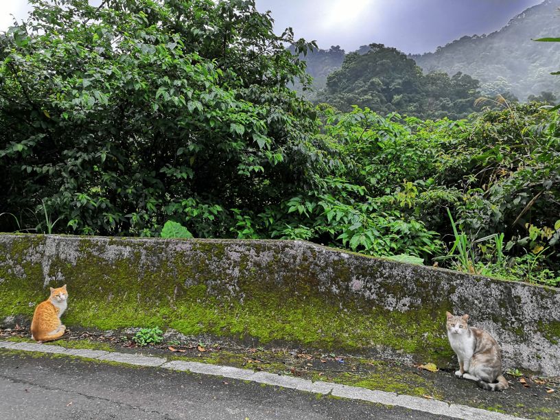 有多美滿,就看今早我們是怎麼過的,昨天你在公園牆上看到原來南港有個地方叫「桂花吊橋」,你是桂花控,今早我們早早就去尋它吧。它在南港的廣大的後山的某一處,和陽明山比起來,南港後山更是清幽;台灣平地地小,山上已被充份開發,最重要的是台灣人們「親山」,很熱愛往山上走動喝茶聊天,多年來開闢了無限多條的山路,就算每天開車一段,一輩子都還是踏不完。我們開了兩面的窗,灌進來的涼氣帶著森林的味,一個急左轉拐進了一條更小的路,路面完全沒有修過了,路的兩側已爬滿落葉、生滿青苔,表示這區連車子都很少經過,眼前已是一片滿滿的綠,灰色的石、黑色的柏油路都快變綠色的了;右側是潺潺的溪,愈往前走,路面越來越窄,已這麼高了,房舍竟還有老舊的三合院,路邊三隻貓,你說牠們年齡相近應該是同一胎,我直接在路上停了下,讓你和貓兒說嗨,停下後才發現,原來此處這麼多聲音,鳥叫聲,青蛙叫,看到一隻尾巴很長的藍鵲,你上網Google到是保育動物──除了那些聲音,其他是完全的安靜。房子好像沒有主人。