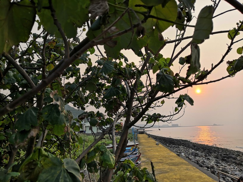 地瓜熱熱燙燙的,就像你一樣的溫暖,我忍不住一直飄看坐在VIP座的那個阿公,他抽著煙、看著手機,穿著寬鬆,肚子大大的,好愜意,他的孫兒女都不知道跑哪裡去了,等到孩子們回來,阿嬤幫妹妹綁頭髮,阿公皺著眉頭勸管弟弟,弟弟學飛機飛來飛去。其他的桌,有人托著長筒相機,有人在追劇,有人在聊天,有的沒進來的直接在黃色步道坐著吃一包洋芋片,大人孩子全部擠在小小石椅,望著同一面海,旁邊地上髒髒破破的塑膠袋裡裝滿可以吃可以喝的。