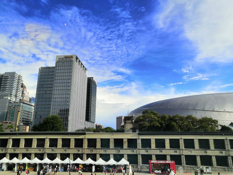 如果兒子沒有先來找我們,就沒有後面一連串更有趣的驚喜小旅行──為了讓兒子等一下陪妹妹出發,我用吹風機吹乾哥哥的鞋,開了車,接了你,再次出發到這個以前叫松山菸廠、現在叫松山文創的地方,美食街滿得像魚缸,樓上的「溫叨」竟都是空桌,我們坐到最好的桌子,挑高工業風、厚實又擦得很乾淨的玻璃看出去,誠品生活大樓順流的弧度,上方的旅館窗戶,前方一排舊菸廠廠房,一排白色帳篷正在辦市集,後面是剛剛要蓋好的大巨蛋,陽光照射呈現黑銀色,旁邊小秀了一下城市的天際線,新大樓們有點擠的站成一團,全部都設計成不搶景的銀色或白色,包括那棟對我創業有象徵意義W Hotel。這座位百分百自然光,桌面是大理石白紋,哥哥說,可以從上往下拍美任何東西,他拍了這裡的擺盤,我點的葡萄柚加濃縮咖啡上了,攪拌之後,可以聞到咖啡有點燒焦的味,葡萄柚也不會這麼酸了,咖啡的存在變成某種臭味,形成了一種特殊的體驗。這一段挺有意思的,因為你和哥哥在讀英文,繼續在做閱讀作業,哥哥甚至寫一些國語的作業,也請教你。而我,在你們有說有笑的時候,體力不支,就在你們對面打起瞌睡,睡了一陣子起來,你們還繼續有說有笑,我就繼續打電腦,狀況奇差,只找了兩個案例,我本來是希望至少找六個,而目標是要十個,也就是把下星期五天(每天兩個)全部搞定。
