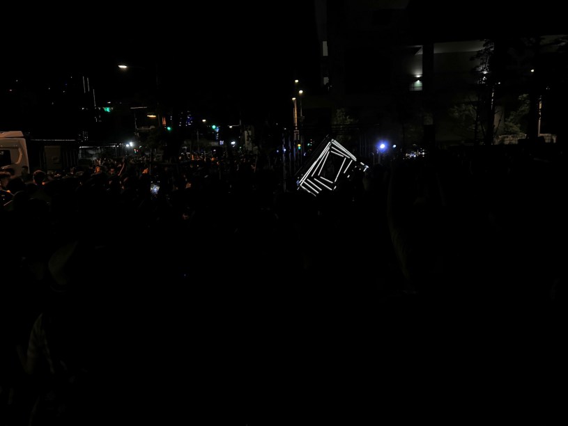 晚上見到了孩子們,送走了辛苦的父母,我和你帶孩子們來到「白晝之夜」。去年此時你帶我參加過,今年它們來到南港,就在家附近。這次顯然人更多了,人的生靈如今就像一團黑壓壓的水,從捷運站流出來,先溢滿了彼岸,然後跨過六線道的忠孝東路這一側也全都是黑黑的人了,一直「流」到階梯上面,全部都是分不清楚誰是誰的、大批的大批的人類,我目測大約有一半左右的人沒戴口罩,表情都自若。很多是帶著孩子,外國人有一些,男同志、女同志有一些,亦有不少自己來體驗的年輕女子,或不知為何在這的中年大叔。