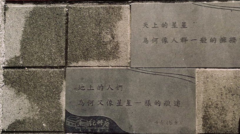 路上,踩到石板,刻著「紀州庵」標誌、文學文句,一位叫「羅青」寫的「天上的星星為何像人群一樣的擁擠?」這地方可以讓文學的靈魂燒到最激情極限,到了傍晚五點半,那位架著眼鏡的外國人仍坐在原處,眼前是筆電,筆電後面是同一所四層樓高的宗廟。裡頭也有三三兩兩人兒坐著,有的認真正在簡報給另一人聽。想起中午其實忘了吃心臟病藥,目前沒事。
