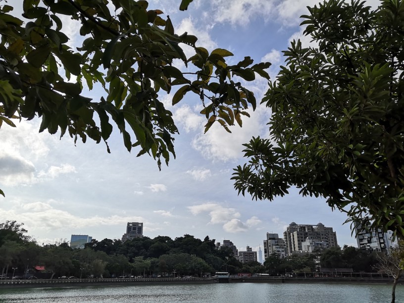 這湖畔的建築還不簡單,還沒有走到那介入湖裡的蜿蜒小道,還沒看到那隻站在湖淺處直挺挺的白鷺鷥,我們先經過了台灣戲曲學院,多宏偉的一棟、兩棟在這裡,在裡面教書、學習的人,會是什麼感覺?再繞半圈,眼前出現了另一棟更漂亮的單層樓白色建築,找到了它的大門,走近、探頭一下,就「沒胃口」了,原來是一間公部門大樓,很多登山阿公阿媽在這裡等山友。等到幾乎繞了一整圈湖,我們經過了這湖畔的高級住宅區,就是這棟,白得不像話的白牆、紅得太有氣質的尖頭屋頂,樓房前又種了一橫排、好像正在站衛兵的椰子樹。這歐式樓房前有室內游泳池、室外網球場,夜間有照明。在它旁邊,還有一棟看似三層樓獨棟別墅的「慈父園」,但如果是個私宅,就不會在牆上掛上大大的三個字,也不會在門口嵌個銘刻記載其由來,到底它是什麼?旁邊又出現一棟「爺爺柏園」,看似新住宅大樓卻無人居住,我終於上網查了,原來,這些都是一位姓謝的大地主所蓋的。不知為何,總覺得再大的富人,若他是住在台灣,也得擠在這麼一個小面積的城市宅樓;相對的,同樣的資產,住舊金山,就會是在藝術宮對面的那間位於頂樓的鋼琴豪宅了。