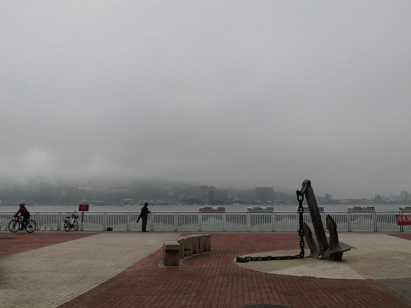 今天霧霾嚴重到連對面的山都看不見,只見一片白。我們大口吸一口氣,這淡水的河邊,我們稍微輕輕的走過。這個時間點,感覺很好,雖然不能玩,但也是因為不能玩,不是在玩,我們靜靜的靠近一下河邊,馬上走回來的第一句話就是討論剛剛與老師的合作要怎麼做。