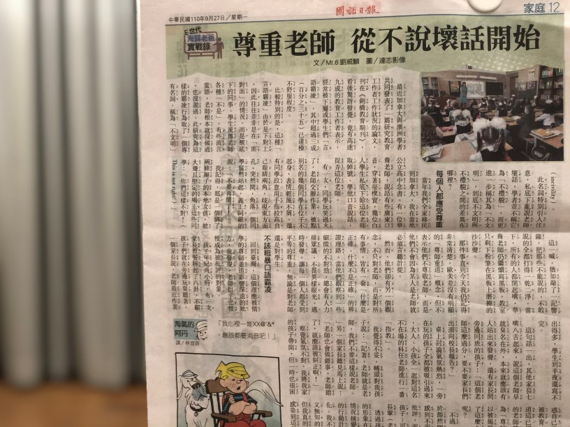 昨天國語日報刊出這一年來我最覺得寫得最有意義的專欄文章!此文中,我先從加拿大與澳洲學者共同發表在《劍橋教育期刊》研究學生對老師的霸凌行為取了一個專有名詞:「不文明」(incivility),再提到當年在高中遇見的華裔公民老師被笑,提到一個關鍵:「歐美並沒有明顯的『尊師重道』概念,但不表示他們不尊敬老師,而是他們並不會因為某人是老師就必須言聽計從的順著他,」我話鋒一轉:「然而,他們卻有另一個觀念,不只對老師,而是對所有事情,皆有一套『什麼是正確、什麼不是正確』的辯證理路,當他們觀察到一些細微的不對勁,總會有人力排眾議、不畏異樣眼光、適時發聲,讓每一個人都受到平等的尊重,無論是老師,還是學生。」