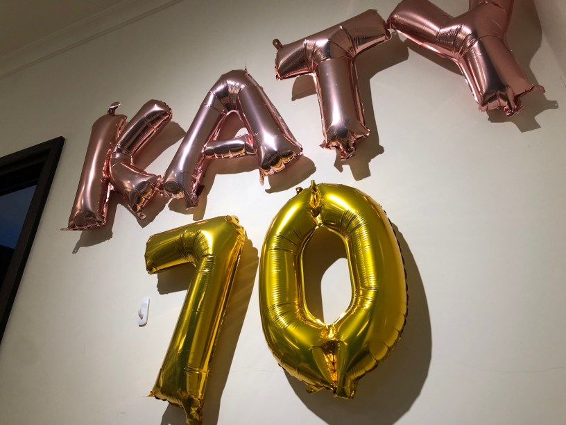 張貼在玻璃上面的那張超大海報,大家驚呼聲一直在,海報由媽媽帶回家保管紀念,KATY 70氣球也是,收拾餐桌,再收拾客廳,我從玻璃拔下最後一段膠帶,感覺到,家裡的溫暖又再次回來了這個「家」,回到我們身邊──這個家不再只是我離婚後「逃」出來所抵達的中繼救援站,它已經再次充滿家人的支持了。