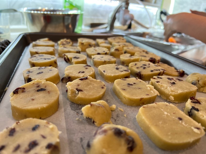 在家裡吃了昨天烤的蔓越莓餅乾、糖炒栗子,烤箱烤的Beyond Meat,以及沙拉等,這些慢慢都成為我們家固定的菜色,也有著固定豐富的營養,好吃;妹妹一邊寫作業,她今天專攻紙飛機,已經摺了四架,哥哥則把自己半關在樓上房間,練習星期一要報告的。