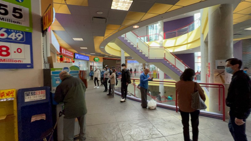 但要習慣,青少年孩子,不下車,留在車裡,後來車子停了21分鐘,前面15分是上一個車主留下來的,我們停在位於Burnaby的麗晶廣場,小時候應該來過一次或兩次,現在沒有印象,一進去,發現它原來是一個超大的商場,有兩層樓,或三層樓。二十年前起初這裡可能都是台灣人,現在是什麼華人都有,完全無視於這裡是加拿大,在這裡開店、逛店、開餐廳、吃餐廳,像亞洲一樣生活、叫賣,處處像「士林夜市」,有些地方像「士東市場」,擺的亂七八糟,東西擺到走道,各種的打折訊息貼滿牆面,居然還是有些洋人來這裡逛,看起來也是很開心、很自在,當然他們很容易認出,因為他們肯定沒有戴口罩──可以看到兩種洋人,一種是有顏色的年輕男女朋友(有可能是菲律賓人),一種是大了年紀的老夫妻,也有跨國婚姻的,笑咪咪的。