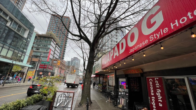 還有下一站嗎?我建議,要不要吃昨天朋友提到的Japadog,大家大喜,我就切入市中心,再教了妹妹一次Downtown這字是什麼意思,妹妹笑,一座城市要將商業區與住宅區分開,比較適合愛整齊的她,她覺得台北都混在一起實在很亂;昨天新聞才說Downtown某條街竟然因為襲擊事件太多而連郵差都得暫停不送信了,我今天很小心的將車子停在Robson街旁,自己下去買,這間裡面人多,華裔都不管了沒有口罩的大嚼特嚼,這次章魚燒、熱狗我都買兩份,但我記得自己的部份,沒買。吃完後,哥哥想上洗手間,我就順著到旁邊的Pacific Center。我開玩笑,現在全溫哥華的購物中心我們差不多已經一一的收集滿了,這間位於市中心的商城比其他的都高級,洋面孔多,亞洲面孔少,不像我們逛的其他mall這麼悠閒,果然就是一種市中心感。這些人在週末是怎麼一同出現在這裡?還是有可能他們本來就是20幾歲的年輕人、就住在這裡附近、在這附近上語言學校或上班等等?