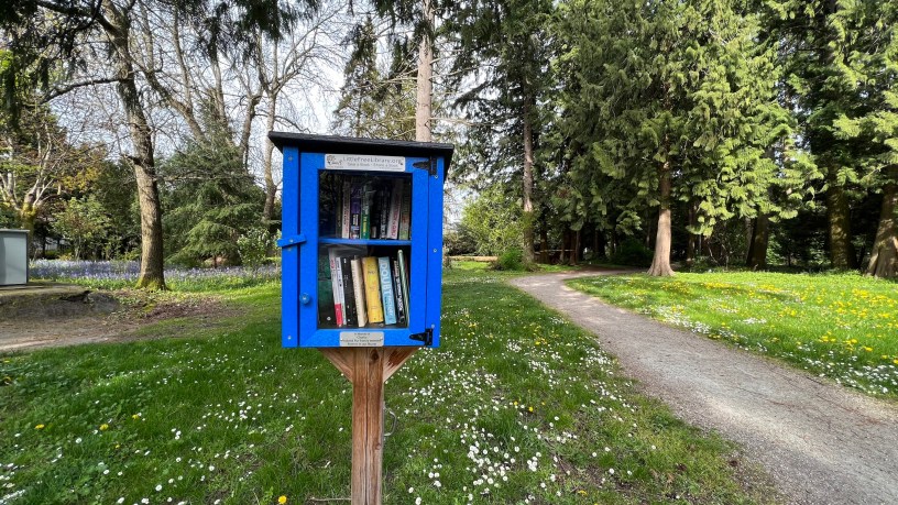 下午去散步,到家旁邊的全自然公園,傍晚會有小蠅亂飛,竟有一個小帳蓬搭在有點泥污的草地中間,這實在不是一座乾爽的公園,卻蓋了一只鮮藍色的小小書櫃,可以交換書。我帶了我的兩本書去擺在裡頭,in exchange拿了一本「Personhood: The Art of Being Fully Human」的勵志書回來。我們去看了一下家旁邊的小商場的健身房──我們現在真的很利用這小商場至極限,買了它的珍奶,在這裡印照片,寄東西到台灣,幾乎每一家店我們都來過了。這健身房並不貴,兩個人份每一週才7元加幣(160台幣),我們參觀了一下,該有的設施是都有(我必須要趕快健身,因為昨日體重又破紀錄的高)。後來再出門一次買了我最愛的Falafel捲餅(也是在隔壁商場),再去Canadian Tire買了兩支噴劑,一支是給狼的,一支是給熊的。