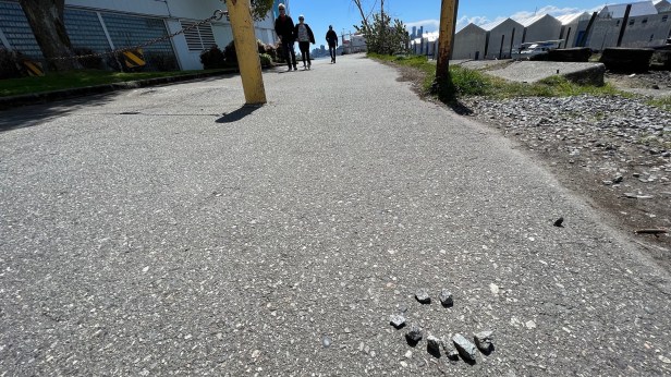 妹妹就不一定了,可是,我仍然堅持這次要帶她透過漫畫來衝陣出去!我們來到北溫Waterfront Park,離之前去過的Lonsdale漁港只有約500公尺,陽光真的是太美好了,水邊冷,我們穿大衣,那個水好大好大,卻不成對比的安靜;這邊的住宅整個靜止像沒人住,一樓種滿了玫瑰花,草皮剪得短短的像地毯。水面上的涼亭特別的美,藍色的鐵欄杆在陽光下面被照得熱了、正在發光著;我們到了水上人家,每一間我們都仔細的努力的從外面看裡面的樣子,大約看得到裡面都擺設充實。走回來的每一條路都靠近水邊,海鷗的叫聲不斷,身體是全白的,在介於深藍色和淺藍色的海水之中劃過去;四位印度男人一起出遊,都很高大,都戴著頭巾,三位是同一個顏色的,陽光下顯得好鮮豔的藍,另一個竟是粉紅色,也是螢光得發亮。妹妹突然想拿路邊石頭擺一張圖,時間不多,她只擺得出一張「笑臉」,一位白人老婆婆經過問我們在擺什麼?她很滿意我們的答案。這間food court是舊地重遊,孩子們一兩個月前就是在這裡初步愛上了Chili這個對他們來說的新食物。我點了11元的wrap,這次是泰式的,現在在溫哥華,泰式就直接叫Bangkok,好幾家都這麼叫了,咖哩再加豆腐,剩下的有生菜等等,好吃。哥哥叫一碗湯,但妹妹再次什麼都不叫,到車上又想吃,我告訴妹妹說要開始與世界有所連結。