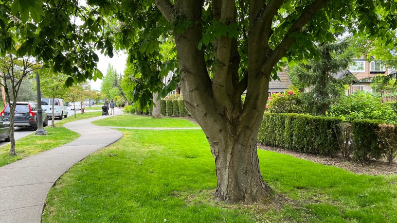 我和你來公眾市場吃中飯、補買青菜,在外面一個角落有一家、寫的是台灣牛肉麵,進去卻是一位大陸口音的女性,顯然menu也修改過,最後吃到的是酸辣麵,已非台式麵。在車裡防疫吃中飯,看著人來人往許久,頗有個感想──來來去去的,有的看起來過得非常艱辛的,買個菜,找錢的,慢慢的、慢慢的湊銅板;有的看起來是送貨,有的眼神茫然亂走,對他們來講,每天經過溫哥華這裡這麼多住豪宅、開好車的有錢人,是什麼感覺啊?旁邊馬上停來一輛純白色的特斯拉跑車,女駕駛人雙手都沒在方向盤上,一邊修指甲,一輛讓特斯拉自動路邊停車,走下來的那股長相就是不一樣,表情也是傲人的,看到這位,大家又是怎麼想呢?我想,他們想的是,至少能夠來住這裡,和國內其他人比起來,還是不錯的。只要能來這裡,做什麼工作都行,尤其是為了孩子,都值得的。