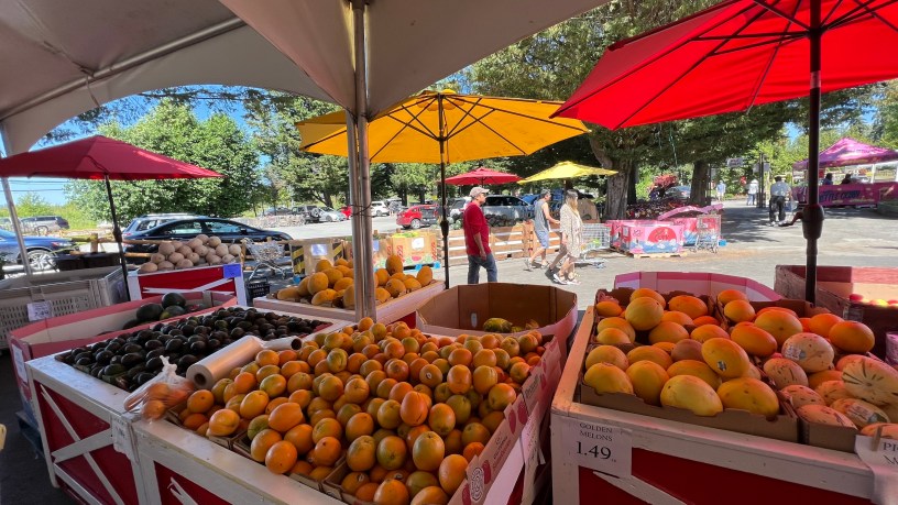 我們和同樣一批人一起逛這個市場約莫半小時,孩子步步跟著,天氣熱了,今天是27度,外面是站不住的,Steveston路一塞車,我看坐在重型機車上的人一直曬太陽真危險,會熱死,我買了一大瓶的無糖可樂,出來變成溫的。