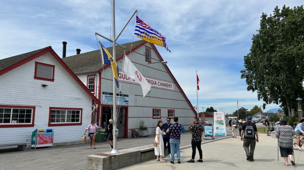 我們下午一點半才出發今日的行程,四點就得回來,因為哥哥下午連續上日文家教、電繪家教──孩子上課像在和朋友說話,我是覺得蠻欣慰的,老師教他們不只專業,還包括人際。出去玩處,我找了兩處選項,一個是中程的UBC,另一個是短程的我們熟悉的漁港Steveston,後來還是來後者了,以為同一個地方,會無聊,但只要又挖出一個新的可去的,永遠都有新回憶!我們這次首次參觀了那間紅屋頂、漆成白色的大木屋「魚罐頭工廠」,這不開玩笑,真的是工廠,機器設備保留,裡頭的一股百年的霉味,好像還有工廠的廢氣味,這麼久,都排不掉;這裡也可說是血腥的,因為是魚,我們都比較沒有計算這裡屠殺多少生靈,但那條生產線「知道」──他們還放了好像日本料理店的模型,魚在生產線的頭端,還是完整的,到了中間某一關,過去就被切成細片,到了中後段已一一填進了罐頭。他們一年生產幾萬個還是幾百萬個罐頭,在二戰期間銷量特大,因為軍人都愛吃;然後二戰本身,也死了上千萬個軍人。