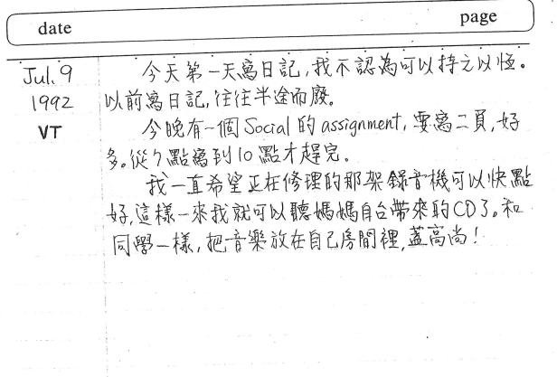 下面是你在三十年前的今天所寫的日記、你的筆跡: