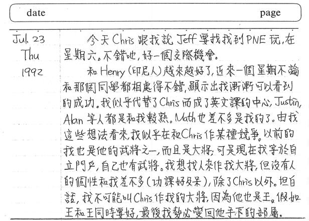 30年前的今天(1992年7月23日),你親筆寫下的日記如下: