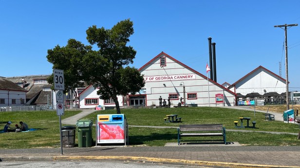 孩子們吃飽了答應可以出去稍走一下,此時陽光其實沒這麼烤人,但孩子懶,繞了一圈,上了甲板,經過那些戶外的餐廳,再繞回來紀念品店,問紀念品店的韓國小妹妹關於哥吉拉拍片的事,她說昨天真的有很多劇組人來過,但今天都不見了;她還說她以為那是秘密,為何你(我)會知道。後來路邊看到兩位洋人在聊天也是在聊這個,有一位說劇組今天跑到Squamish拍了。和孩子繞回到Moncton老街,在藥店買了兩罐礦泉水、一罐無糖可樂,這店裡的冷氣是最強的;然後又回車上了。只是第一站,再帶妹妹去Richmond Center買些衣服,哥哥回家。