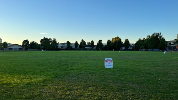 此時我與好隊友出門錄今日頭條知識,以前高中旁邊的草地,這是第一次錄今日頭條知識的地方(約在五、六月期間),那時候背後有個遊民,當時很生澀,如今已完整,但我反而覺得已經僵化,稿子一模一樣,唸太熟了,反而無法再輕易改變,還好我每次都有新的「哽」,今天很順,我們買一小時的車位,也剛好在一小時後結束,錄了五支,平均每支10分多鐘,背後綠油油的草地好隊友都問了兩次是不是假的草啊?坐上去濕潤潤的,是真草。有講國語的華人在附近跳土風舞,一群年輕人在壘球場上玩某種球,有一位遊民躲在角落。加拿大雁都不見了。