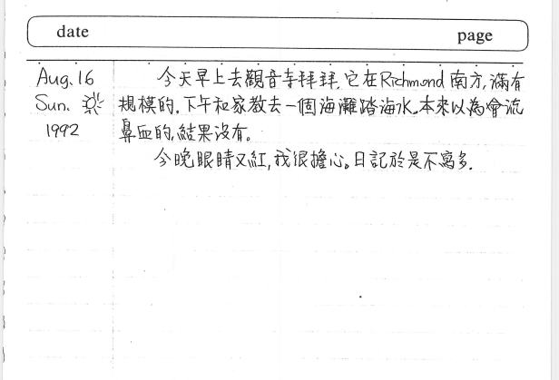 30年前的今天(1992年8月16日),你親筆寫下而保存了三十年的日記如下: