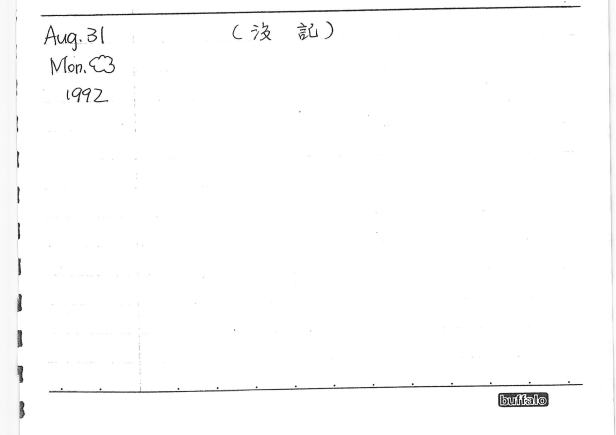 以下為30年前的今天(1992年8月31日)你親筆寫下的日記: