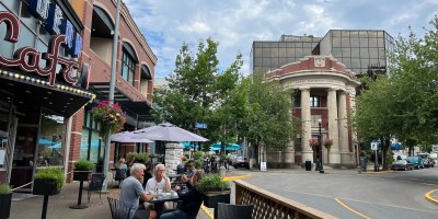 Nanaimo的市中心街邊露天雅座享用兩小時中餐,看海灣、壁畫村、購物中心、買泡麵,趕緊回家工作