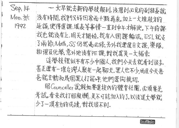 以下是30年前的今天(1992年9月14日)當時15歲的你所親筆寫下的日記:
