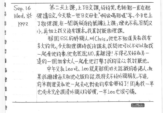 以下是30年前的今天(1992年9月16日)當時15歲的你所親筆寫下的日記: