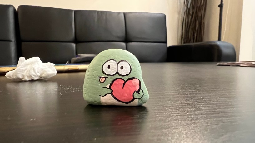 今天是臨時多出來的國定假日,伊麗莎白女王葬禮,英國有時差,應該是先開始了,Google的logo改為整片黑色,印象中從沒這樣顏色過。我電視沒打開,不知道有什麼新聞,只有一段時間打開看海綿寶寶電影,妹妹看了一下,哥哥看了一下,就留在那邊繼續播放。今天妹妹又多畫了一顆可愛的石頭,是一隻不知名的動物,沒手也沒腳,只有一顆圓圓肚子,淺咖啡色其實是石頭原色,兩隻圓圓眼睛看著我,我也看著「它」,覺得好像是活的,很令人疼惜。