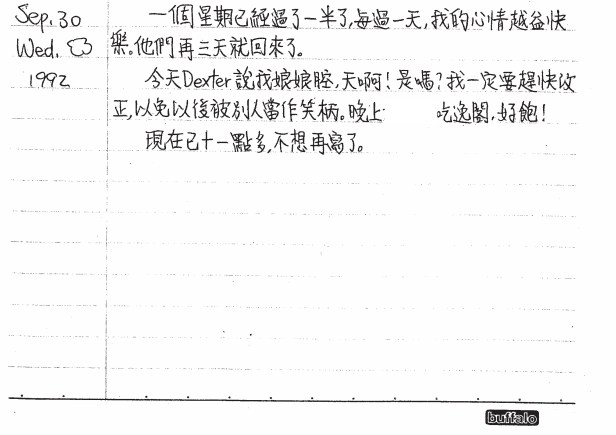 以下是30年前的今天(1992年9月25日)當時15歲的你所親筆寫下的日記: