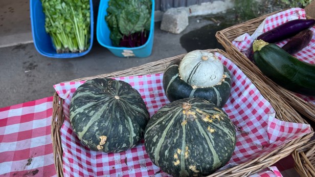 這位香港人大媽,叫她老闆娘,她會馬上嚴正否認她是老闆娘。每買一樣東西,她就會推薦其他的,她推薦其他東西的感覺都好自然喔,她會先介紹這種菜的菜名,像那個奇怪形狀的茄子,她再介紹它可以做成什麼菜、弄什麼很好吃。旁邊奇怪的南瓜,她說叫做Buttercup Kabocha,說是日本南瓜,粉粉的很好吃的;明明都只是生的菜,聽她講一講,我們的想像力讓我們口水都快滴下,大概只對吃素的才這麼有用,我們這次又買了一堆,不到台幣1000元。
