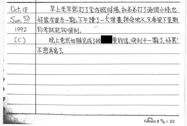 以下是30年前的今天(1992年10月18日)當時15歲的你所親筆寫下的日記: