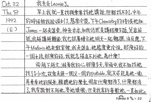 以下是30年前的今天(1992年10月22日)當時15歲的你所親筆寫下的日記: