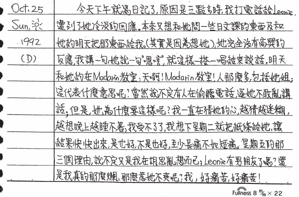 以下是30年前的今天(1992年10月25日)當時15歲的你所親筆寫下的日記: