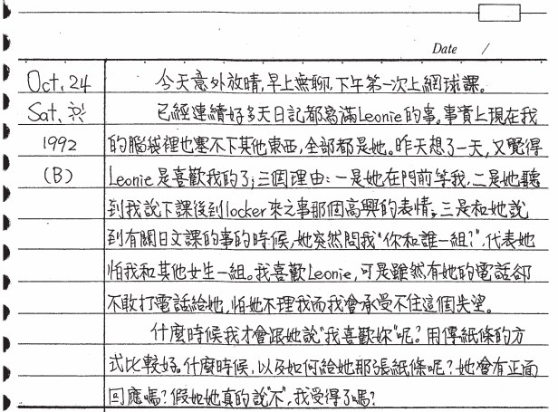 以下是30年前的今天(1992年10月24日)當時15歲的你所親筆寫下的日記: