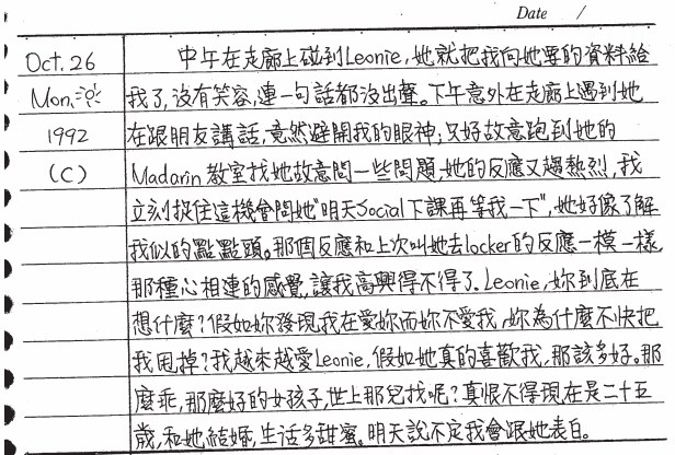 以下是30年前的今天(1992年10月26日)當時15歲的你所親筆寫下的日記: