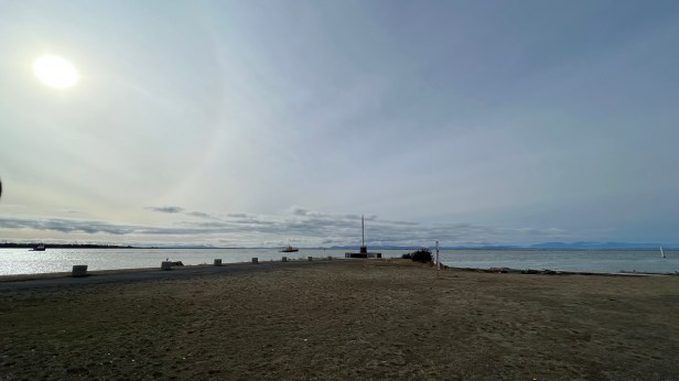 白晝升起,孩子上學,Steveston漁港,真的感覺很好。這次回來若我們住的沙洲城市沒有漁港,感覺會打對折,今天又突然出太陽,明明氣象報告是百分之百下雨機率啊。我們來漁港錄今日頭條知識,還繞到罐頭工廠的側邊,走得更深。有一位騎單車的長得像男生的女性,停車用手機自錄,講話,聽口音就知道台灣來的,自己一人來運動探險。沒想到罐頭工廠後面還有好多好多倉庫,走到沒陽光處就會冷,倉房後方在地圖上是更西南角,已到了漁港小路的7號路,叫做Garry Point Park,還看到大貨船恰巧經過被陽光照得閃閃動的河面,載滿了鮮黃色的土。我們總共進入罐頭工廠博物館上了三次廁所。