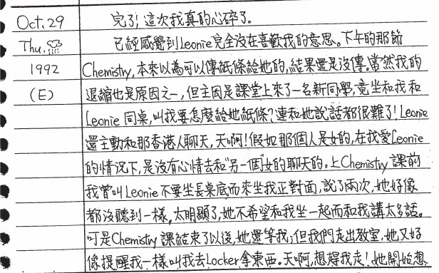 以下是30年前的今天(1992年10月29日)當時15歲的你所親筆寫下的日記: