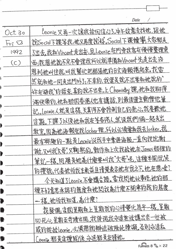 以下是30年前的今天(1992年10月30日)當時15歲的你所親筆寫下的日記: