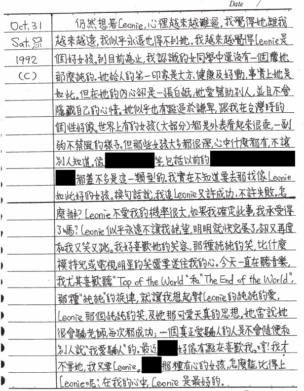 以下是30年前的今天(1992年10月31日)當時15歲的你所親筆寫下的日記: