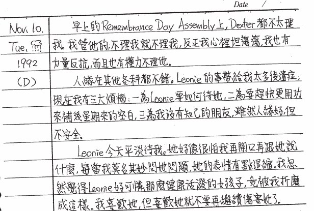 以下是30年前的今天(1992年11月10日)當時15歲的你所親筆寫下的日記: