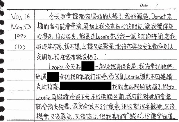 以下是30年前的今天(1992年11月16日)當時15歲的你所親筆寫下的日記: