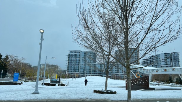 早上,外面先是一片的灰,積雪的狀況與昨天一樣,我們已在路上,要到永和燒餅油條之前,天空先飄了一兩片雪,開進停車場,已如下雨一樣的狂下雪了,等我們從Richmond Centre包好好隊友的新的大螢幕iPhone手機的膜,還買了一塊「老婆餅」,還有1500元的無印良品,外頭已經落雪像一片雪幕,在車裡猛吹24度的暖氣,比在大熱天吹冰冷冷氣還舒服。