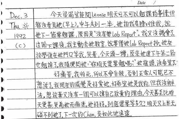 以下是30年前的今天(1992年12月3日)當時15歲的你所親筆寫下的日記: