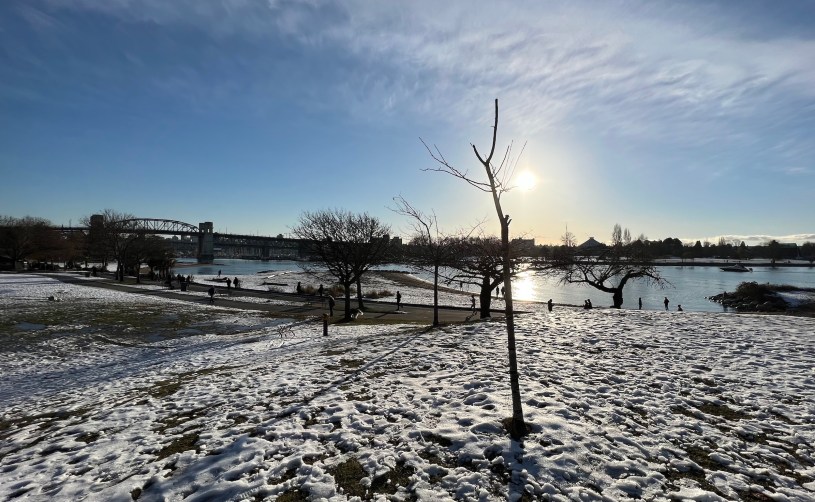 氣象報告說昨天半夜應該下雪,但半夜並沒有下雪,今早起來,積雪還比前晚少了一點點,出了大太陽,我覺得我們四人很久沒有出門,倒不是因為冬天,更因為孩子進入了穩定期,常常需要趕做報告,大人也進入衝刺期,我忙著工作與事業,好隊友忙著參加靈性課程團體,現在已排得每天都有,有時一天兩場──已非剛來的時候體驗這裡一切留下回憶,但是看看之前的影片會發現,還好之前剛抵達溫哥華前半年,都有常常出去、都有常常錄下影片,孩子真的一直在長大啊。幾個月看,就長得不一樣了呀。所以今天趁著晴天,中飯由好隊友煮完每一個人的份,我們出發過橋到溫哥華市區走走。