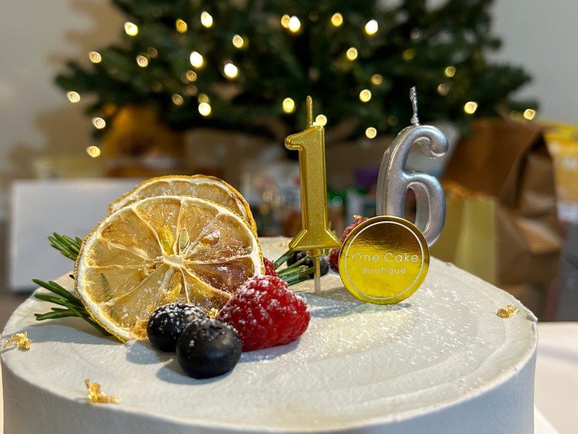 或許是到加拿大來,終於可以有如準備起飛的飛機在跑道上,用一種晴空萬里的心情在過生日?還是,16歲的確是一個成年年齡,應該好好過生日?今天是我家兒子16歲生日,雖然仍上學,不減生日情趣,從昨天起我就多次催促兒子與媽媽視訊,今天到現在(晚上)還在催。放學回來,兒子帶回一份來自女同學的友善生日禮物,老妹比他還開心,代為念出那封信,到了下午7時,我們和台灣的家人一起「元宇宙慶生」,孩子的爺爺奶奶在台北端還另準備八寶糕當蛋糕及蠟燭,兩位老人家貼了一大張孫子小時候的各式照片,而弟弟叔叔送的禮物也再次在慶生前一小時由Amazon送到家門口,是一本西洋人常買給成年孩子的「查理」精裝書。對兒子而言,這次生日禮物最主要的或許是那台我們家目前最先進最好的Macbook Air,M2晶片的,再加上爺爺奶奶送的無線耳機、電腦包,最後好隊友剪了一支從早開始幫兒子清理他髒髒房間、洗熊熊……的影片。生日蛋糕上面插著「1、6」,背後是兒子自己裝的耶誕樹與閃閃小燈,樹下擺滿了今去有機店買的各式台灣零食……。