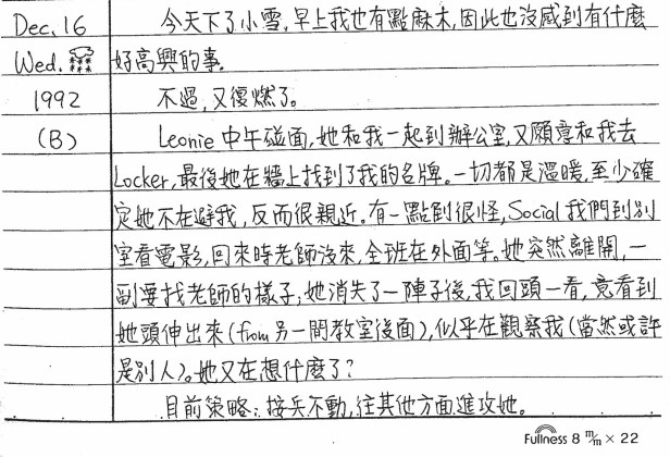 以下是30年前的今天(1992年12月16日)當時16歲的你所親筆寫下的日記: