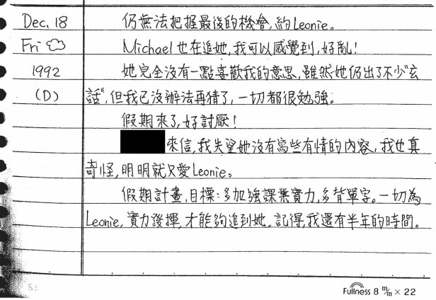 以下是30年前的今天(1992年12月18日)當時16歲的你所親筆寫下的日記: