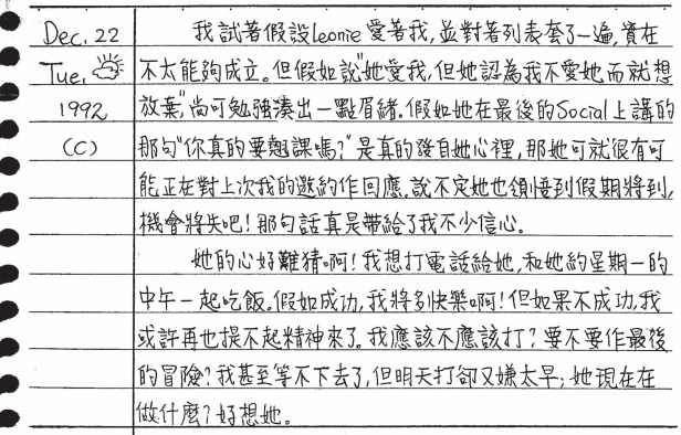 以下是30年前的今天(1992年12月22日)當時16歲的你所親筆寫下的日記: